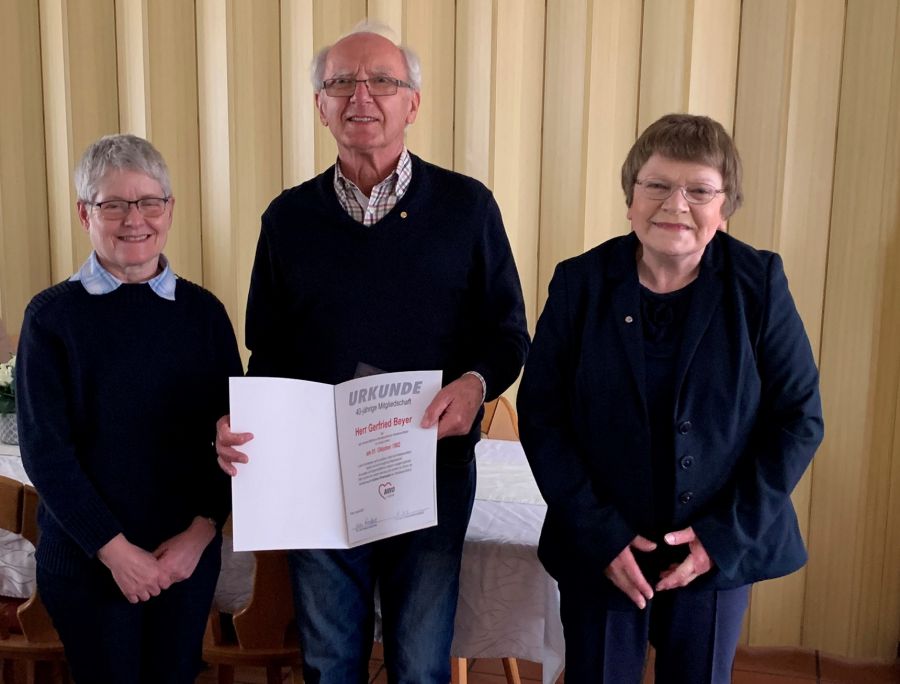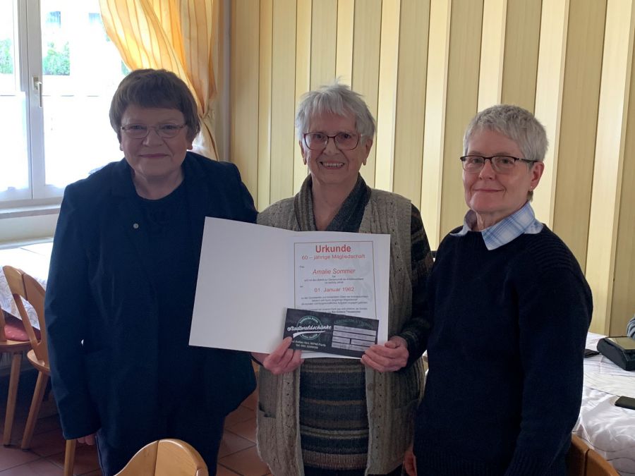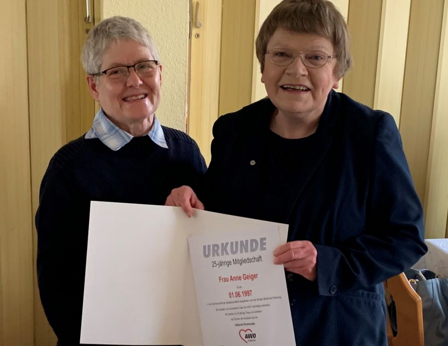 Im Rahmen der Jahreshauptversammlung des AWO-Ortsvereines Fürth-West wurden für ihre langjährige AWO-Mitgliedschaft durch die Ortsvereinsvorsitzende Anne Geiger und die Fürther Kreisverbandsvorsitzende Karin Hirschbeck einige Mitglieder geehrt. Amalie Sommer, die im April diesen Jahres ihren 100-jährigen Geburtstag feiern konnte, erhielt für 60 Jahre AWO-Mitgliedschaft eine Ehrungsurkunde sowie eine besondere Ehrungsnadel. Für 50 Jahre AWO-Mitgliedschaft wurden Anneliese Feuerlein und Georg Dresel, für 40 Jahre AWO-Mitgliedschaft Gerfried Beyer und für 25-jährige Mitgliedschaft Anne Geiger mit Ehrungsurkunde und Ehrungsnadel geehrt. Manfred Schmerler (25 Jahre), Werner Murr und Gabriele Scharlott (je 10 Jahre) konnten leider nicht anwesend sein und erhalten ihre Ehrungsurkunden und Ehrungsnadel mit Geschenkpräsent persönlich durch die Ortsvereinsvorsitzende Anne Geiger und dem Kassier Hans Schwendinger.