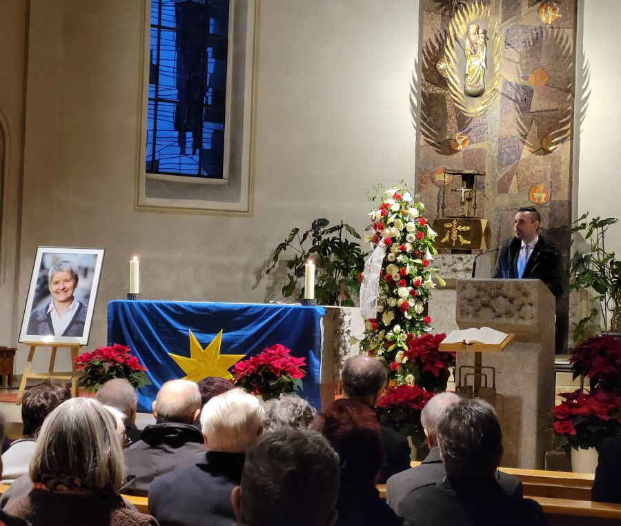 Am 08. Dezember 2022 ist die AWO-Kreisvorsitzende Karin Hirschbeck im Alter von 61 Jahren plötzlich und unerwartet bei einem tragischen Verkehrsunfall ums Leben gekommen. Im Rahmen einer würdevollen Gedenkfeier am 14. Januar versammelten sich zahlreiche Angehörige, Freunde, Weggefährten des AWO-Kreisverbandes, befreundete Vertreter aus den AWO-Bezirks- und Landesverband, der HWA sowie der Politik in der katholischen Kirche „Unsere Liebe Frau“ und nahmen Abschied von ihr.